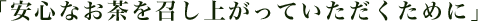 日本のお茶という文化遺産を大切に受け継いでいくために、時には産地とそこで働く農家さんの活性化を含めた、お茶づくりをしていきます。そして、日本各地に息づく評価されるべきお茶に、もう一度光を当てるべく、さらなる精進を続けていきます。